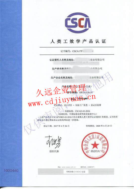 人類工效學產(chǎn)品認證證書